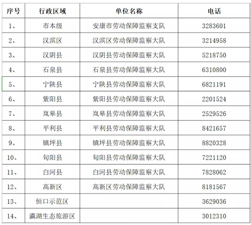安康市“根治欠薪夏季行動”舉報投訴電話