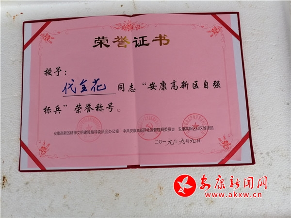 筆者從陳斌口中得知,2019年6月,代全花分別被安康高新區(qū)和五檔村黨支部、村委會授予“自強標(biāo)兵”和“自主創(chuàng)業(yè)模范”榮譽稱號,去年一家成功實現(xiàn)了脫貧。?