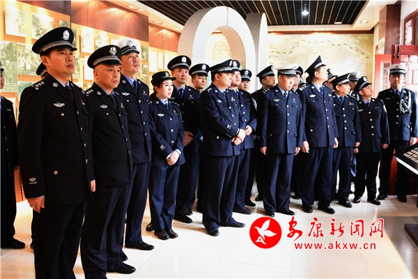 在巍然聳立的烈士紀(jì)念碑前,全體民警輔警整齊列隊(duì)、莊重肅立。民警代表首先向英雄烈士敬獻(xiàn)了花籃,全體人員脫帽肅立、鞠躬默哀,并依次上前瞻仰英雄烈士,通過回顧英雄事跡,表達(dá)對(duì)革命先烈的深切悼念和無限哀思。隨后,全體黨員同志站在烈士紀(jì)念碑前高舉右手,莊嚴(yán)宣誓,在鏗鏘誓言中重憶入黨入警初心、告慰英靈。