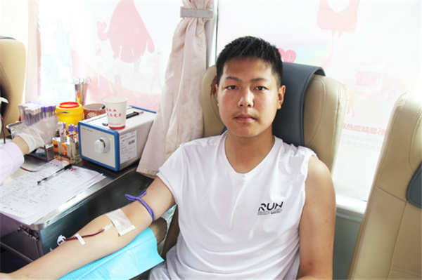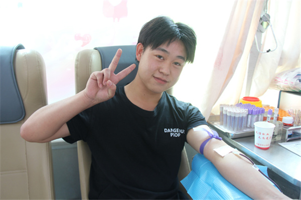 金濤濤是汽修專(zhuān)業(yè)四年級(jí)的學(xué)生,當(dāng)天他第一個(gè)走上獻(xiàn)血車(chē),已經(jīng)第四次獻(xiàn)血的他顯得非常輕松。他告訴我們,自己初次獻(xiàn)血是十八歲,之后每年時(shí)間到了都主動(dòng)來(lái)獻(xiàn)血,上次他還拉上了爸媽?zhuān)患胰谝黄皤I(xiàn)了血。金濤濤覺(jué)得獻(xiàn)血特別有意義,對(duì)自己的身體有好處,還能救人,每次收到血站發(fā)來(lái)的用血短信心里都超級(jí)自豪,就想多喊幾個(gè)人一起來(lái),他說(shuō)今后一定爭(zhēng)取把全宿舍的人都動(dòng)員起來(lái),多獻(xiàn)血多出力多助人!