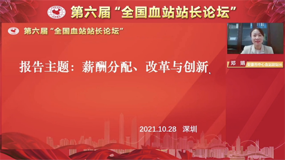 為加強(qiáng)全國(guó)血站的經(jīng)驗(yàn)交流與合作,2021年10月27日至28日,第六屆 “全國(guó)血站站長(zhǎng)論壇”在深圳市舉辦。中國(guó)輸血協(xié)會(huì)理事長(zhǎng)、世界衛(wèi)生組織輸血合作中心主任朱永明,深圳市衛(wèi)健委二級(jí)巡視員林漢城等相關(guān)領(lǐng)導(dǎo)出席并致辭。此次論壇的主題是“血站建設(shè)與發(fā)展、改革與創(chuàng)新”,來(lái)自全國(guó)各省、市血液中心(血站)的同仁通過(guò)線上方式參加會(huì)議。安康市中心血站副站長(zhǎng)鄧娟作為全國(guó)血站六個(gè)優(yōu)秀論文交流發(fā)言人之一,就安康血站績(jī)效分配、改革與創(chuàng)新工作在會(huì)上進(jìn)行了經(jīng)驗(yàn)交流。