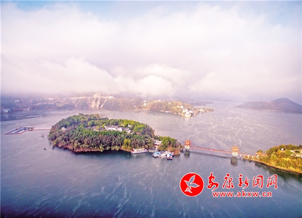 初冬的清晨,瀛湖風(fēng)姿綽約、曼妙無比。起初湖水像是受熱不均的沸水,這里一點(diǎn),那里一塊冒著熱騰騰的青煙,如絲如縷,在水面上輕盈地飄動(dòng)、游離、撕扯,如慵懶自在的白云,把天空、湖水襯托得更藍(lán)。漸漸地,煙嵐越來越濃,越來越多,像化不開的乳汁,最后整個(gè)湖面煙波浩渺,小船和遠(yuǎn)山若隱若現(xiàn),似人間童話仙境。這樣的山圍繞著這樣的水,這樣的水倒映著這樣的山,再加上湖中帆影點(diǎn)點(diǎn),白鷺行行,小島林立,魚群結(jié)對(duì),有種人在畫中游的感覺。深冬,總會(huì)落一兩場(chǎng)雪。那雪,極富層次。山下,素雪輕薄覆蓋;山上銀裝素裹,玉潔冰清。湖水則咕嘟咕嘟冒著熱氣,白綠相配,分外醒目,似丹青妙手繪制的山水畫,又似巧手繡娘精繡的刺繡,美輪美奐,惹人愛憐。