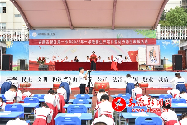 高新一小舉行“喜迎二十大 一起向未來(lái)”一年級(jí)開(kāi)筆禮暨優(yōu)秀師生表彰大會(huì)