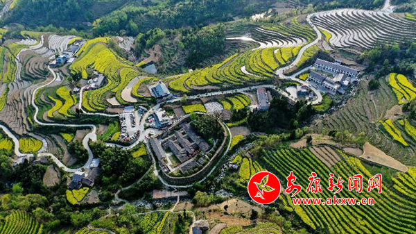 三三兩兩的房屋,就掩映在層疊的菜花梯田間,潔白的墻面,黛青的屋瓦,金燦的菜花,有種遺世獨立的靜美,塵世的喧囂一下子就遠(yuǎn)了。尋一條鄉(xiāng)野小徑,步入茫?;ㄌ镩g,不時有蜂蝶流連,孩童嬉鬧,農(nóng)人牽著牛自不遠(yuǎn)的長橋上悠悠走過,處處都流淌著鄉(xiāng)村田園的盎然春意。