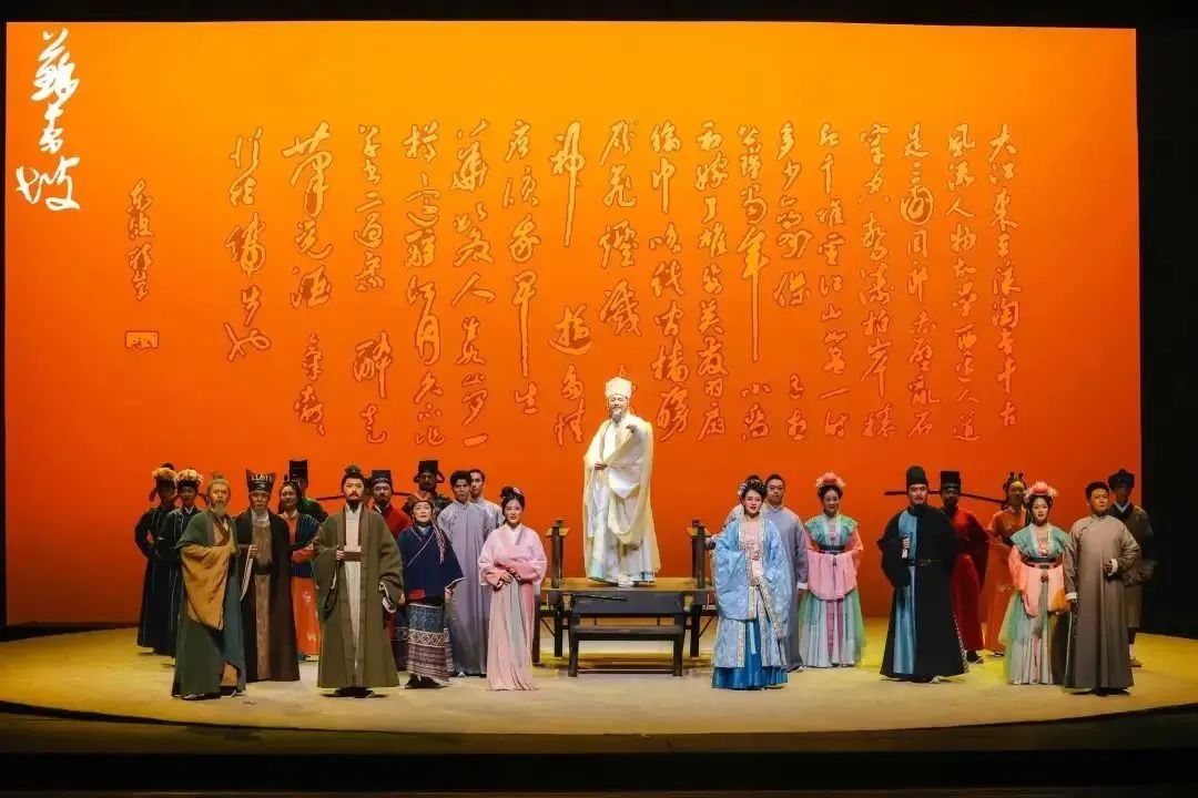在舞美方面,主創(chuàng)團(tuán)隊(duì)做到了“詩意”與“歷史”的融合。翻開歷史的書頁,不是還原那份厚重,而是寫意的留白。用東坡筆下輕盈的詩詞創(chuàng)作一臺詩意的世界。話劇《蘇東坡》好似流淌千年的宋韻遺風(fēng),讓人目不暇接。