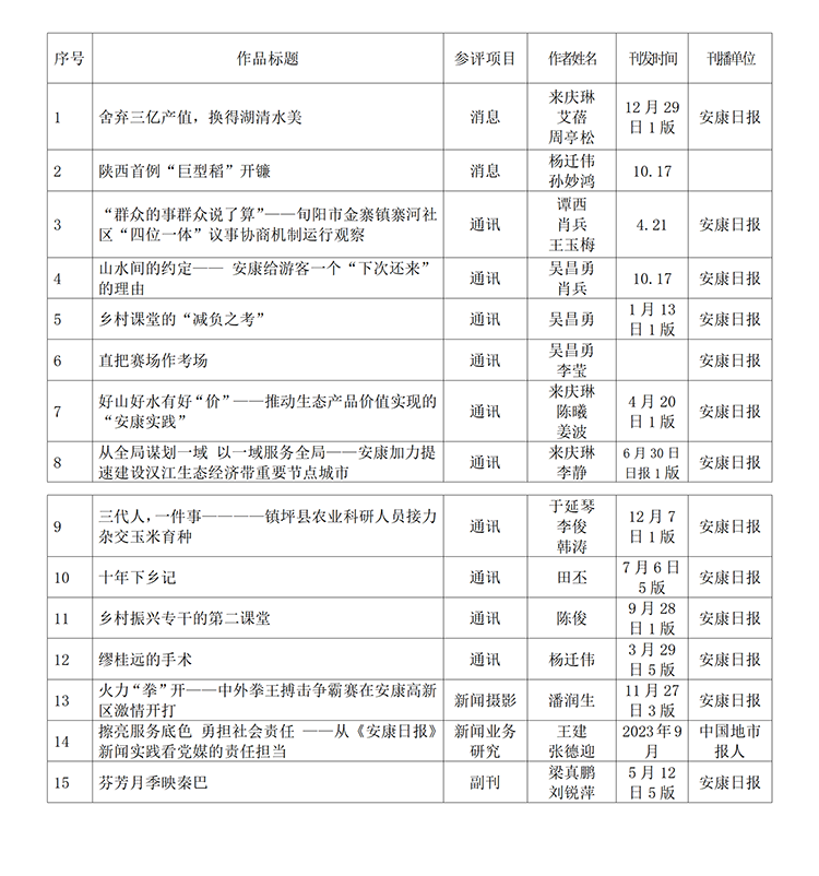 安康日?qǐng)?bào)社參評(píng)“2023年度陜西新聞獎(jiǎng)”作品公示