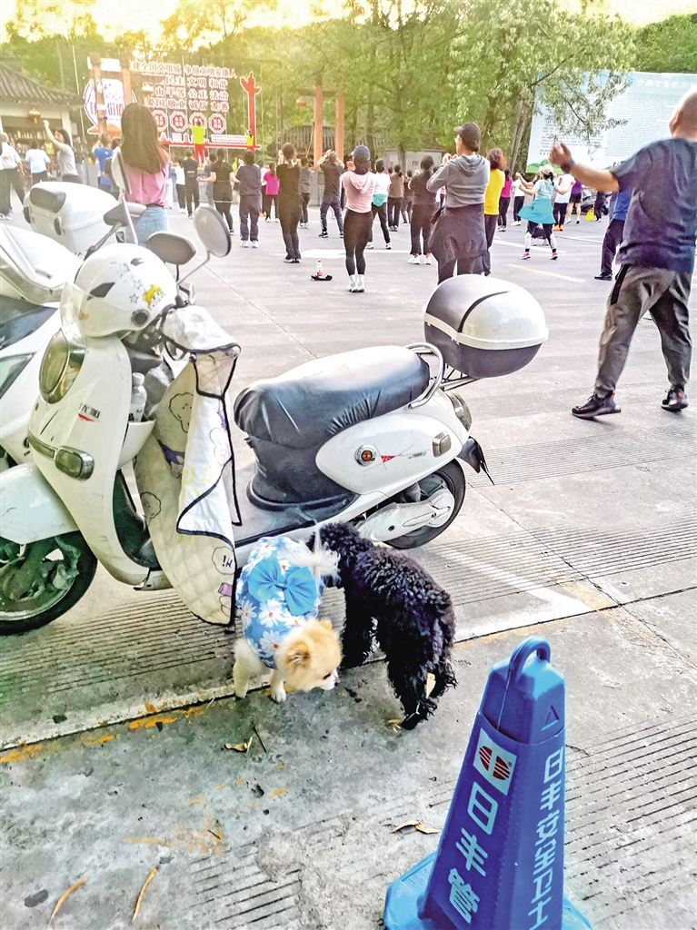 4月17日,在安康香溪洞景區(qū)廣場,有市民遛狗不牽繩。