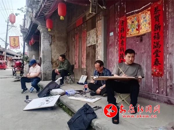 活動(dòng)期間,藝術(shù)家們先后深入示范區(qū)袁莊村插秧節(jié)活動(dòng)現(xiàn)場(chǎng),感受了恒口貢米之鄉(xiāng)的田園風(fēng)光;在“溪映明月·南山云見(jiàn)”,藝術(shù)家們用畫(huà)筆捕捉山水的靈動(dòng);在恒口明清老街,古老建筑和獨(dú)特地域文化,也為藝術(shù)家們提供了豐富的創(chuàng)作靈感。在示范區(qū)黃營(yíng)漁村,藝術(shù)家們感受了“漁旅融合”的鄉(xiāng)村之美;在月河村,藝術(shù)家們走村入戶感受到了鄉(xiāng)親們的熱情淳樸,看到村上鄰里和諧、妻賢子孝、家庭和諧的濃濃氛圍,令他們感動(dòng),他們用細(xì)膩的筆觸記錄了鄉(xiāng)村的寧?kù)o和諧與美麗。