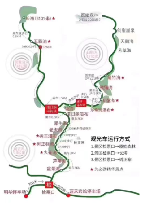 九寨溝就像高腳杯一樣的一總二分一條溝。如圖所示: