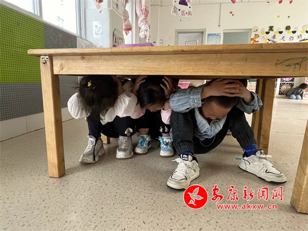 隨著室內(nèi)避震警報響起,防震演練正式開始,老師們迅速啟動《防震疏散演練應(yīng)急預(yù)案》,各班教師立即引導(dǎo)幼兒盡量躲避在室內(nèi)墻根、墻角或床、桌等相對堅(jiān)硬的家具與三角區(qū)避震空間避險,引導(dǎo)幼兒身體彎曲,降低身體重心,盡最大努力保護(hù)好頭部。逃生疏散中老師不斷提醒幼兒們不要擁擠,手保護(hù)頭部、彎腰,迅速且有序沿著指定疏散路線撤離到安全區(qū)域,同時檢查是否有掉隊(duì)的孩子,確保每位幼兒安全撤離。