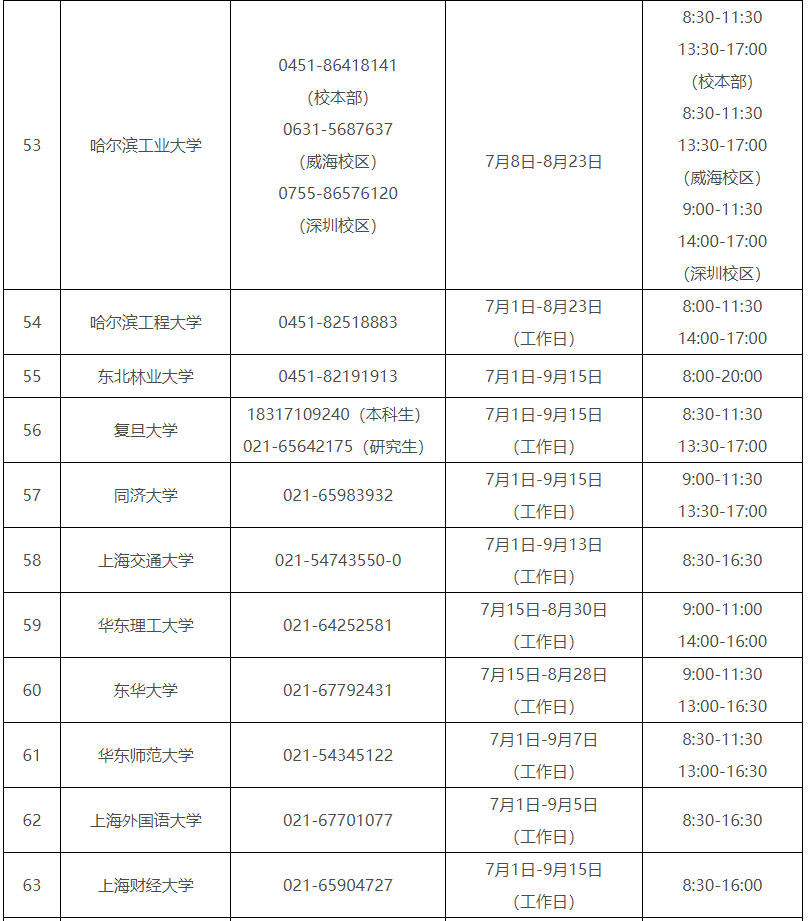 受理時間:7月1日-9月15日(工作日)8:00-12:00 15:00-18:00