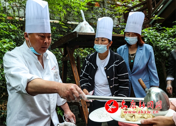 但隨著時代的發(fā)展,人們消費理念的更新,能制作傳統(tǒng)白河“三點水”宴席的人越來越少,偌大一個縣,找不出幾個能夠獨當一面制作傳統(tǒng)宴席白河“三點水”的廚師。所以他毅然決定辭去高薪的主廚工作,奔走于鄉(xiāng)村,上門做家政服務,在實地操作技藝中傳幫帶一批會制作白河“三點水”宴席的鄉(xiāng)廚。
