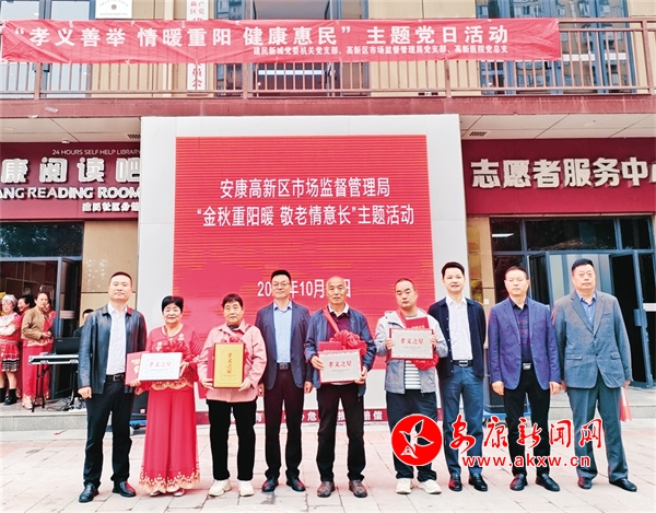 本網(wǎng)訊(通訊員 汪章飛)為營造向上向善的社會(huì)文明風(fēng)尚,10月11日,高新區(qū)汪槽村聯(lián)合包聯(lián)單位高新區(qū)市場(chǎng)監(jiān)管局、高新醫(yī)院、陜西萊安客商貿(mào)有限公司舉行“孝義善舉·情暖重陽”暨“孝義之星”“孝義之家”授牌活動(dòng)。