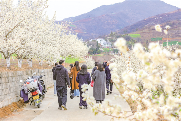 三月上旬,“櫻花之約·和美鄉(xiāng)村”示范展演在段家河薛家灣上演,櫻桃花海中,歌舞、漢服走秀、搖滾樂(lè)、表演唱、樂(lè)器演奏、小品等群眾喜聞樂(lè)見的節(jié)目,將鄉(xiāng)土藝術(shù)與特色民俗文化深度融合,舞鄉(xiāng)情、唱鄉(xiāng)音、觀演出、賞春景,以村莊房舍和漫山櫻桃花為背景,為游客送上了一道道精彩紛呈的暢游“花”樣春日“文化大餐”。