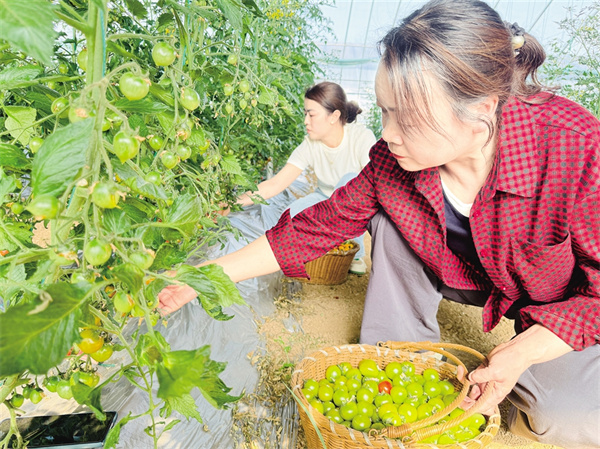 在分揀包裝區(qū),果農(nóng)們將圣女果按顏色、甜度分級包裝?!扒嗌鸲雀?,適合鮮食;紅色果酸甜適中,主要供應(yīng)餐飲店?!贝迕駝⒋蠼憬榻B,自己以前在外地務(wù)工,現(xiàn)在在家門口就能上班,每個月能掙3000多元。在歡樂采摘區(qū),游客們一邊采摘一邊拍照,發(fā)微信朋友圈展示觀光采摘的樂趣。