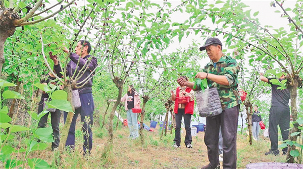劉術(shù)榮的桑樹枝繁葉茂,桑葚掛滿枝頭,吸引了市民和游客觀光采摘。他每天請了十幾名工人幫忙,抓緊時間采收桑葚。經(jīng)過科學(xué)管護(hù),這片果桑園每年能產(chǎn)桑葚超過20噸,帶動30余戶村民實現(xiàn)穩(wěn)定增收。