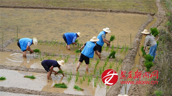 “我們?cè)跐O灣村麻莊組設(shè)立了水稻肥效對(duì)比試驗(yàn)田,今天我們組織農(nóng)技人員和農(nóng)戶一起進(jìn)行分區(qū)試驗(yàn),開展插秧工作,為水稻單產(chǎn)提升打造樣板田?!睂庩兛h農(nóng)業(yè)技術(shù)推廣站副站長袁年東介紹道。