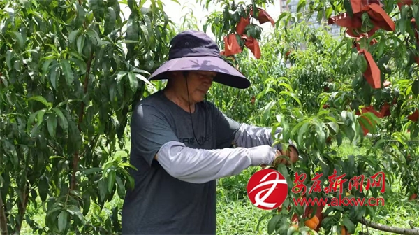 同樣迎來收獲的還有城關(guān)鎮(zhèn)的黃桃,在城關(guān)鎮(zhèn)龍嶺村的黃桃種植基地,連片的桃樹郁郁蔥蔥,金燦燦的黃桃壓彎了枝條,空氣中彌漫著誘人的桃香。基地負責人劉宏正忙著采摘,臉上洋溢著燦爛的笑容,他一邊采摘一邊介紹道:“我們這個桃園有金鳳黃桃、黃金黃桃、秋彤桃和冬桃四個品種,一共有9畝多,從6月中旬到10月左右,陸續(xù)都有成熟的桃子。”