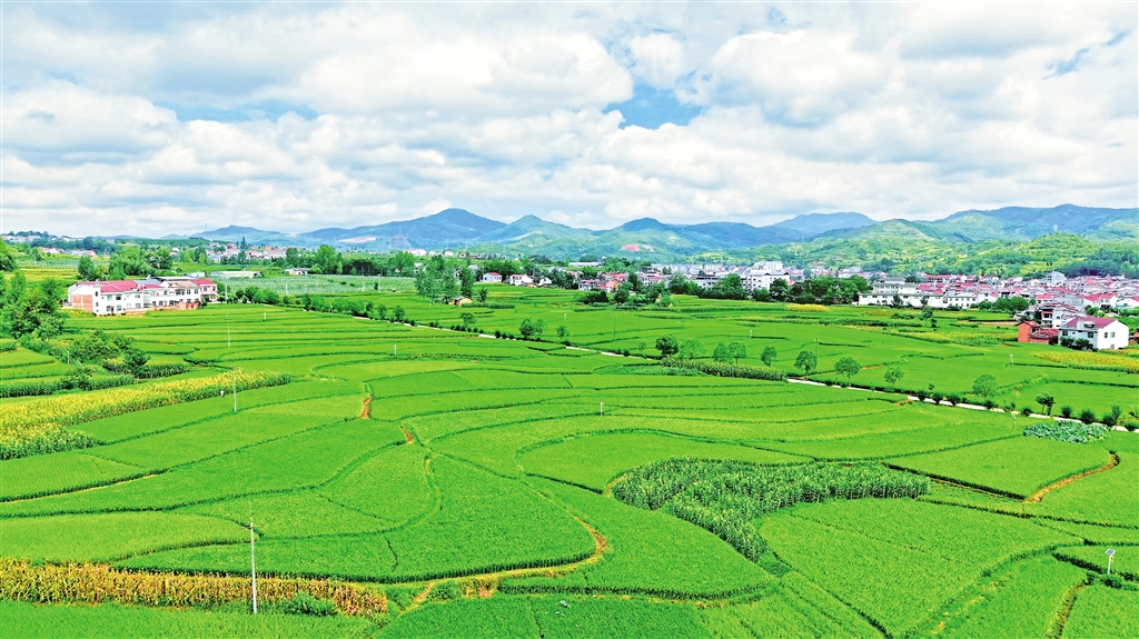 在漢陰縣平梁鎮(zhèn)新河村,連片的綠色稻田與藍(lán)天白云相映成趣,勾勒出一幅生機(jī)盎然的田園畫卷。王建霞 黃智發(fā) 攝