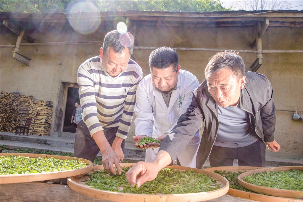 “十四五”期間,我市持續(xù)推進(jìn)茶產(chǎn)業(yè)發(fā)展,努力實(shí)現(xiàn)茶產(chǎn)業(yè)“四時有收”。圖為紫陽白茶非遺制作技藝代表性傳承人在高橋鎮(zhèn)裴壩村,向茶農(nóng)推廣紫陽白茶非遺制作技藝。