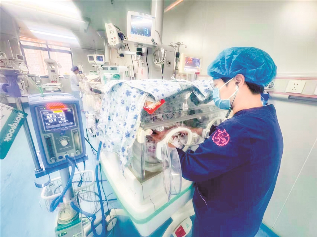 營養(yǎng)支持是早產兒成長的關鍵。醫(yī)療團隊采取“毫克級精準喂養(yǎng)”策略,從微量開始,循序漸進,耐心應對喂養(yǎng)不耐受等各項挑戰(zhàn)。感染是早產兒面臨的最大威脅,該院嚴格執(zhí)行無菌化管理,從環(huán)境消毒到人員接觸,每個環(huán)節(jié)都極為嚴謹。在此基礎上,該院還為嬰兒精心打造了“恒溫溫室”,嚴格調控光線與噪音,并通過開展“家庭參與式護理”,引入袋鼠式護理、音樂療法等方式,讓救治過程充滿溫度與親情。