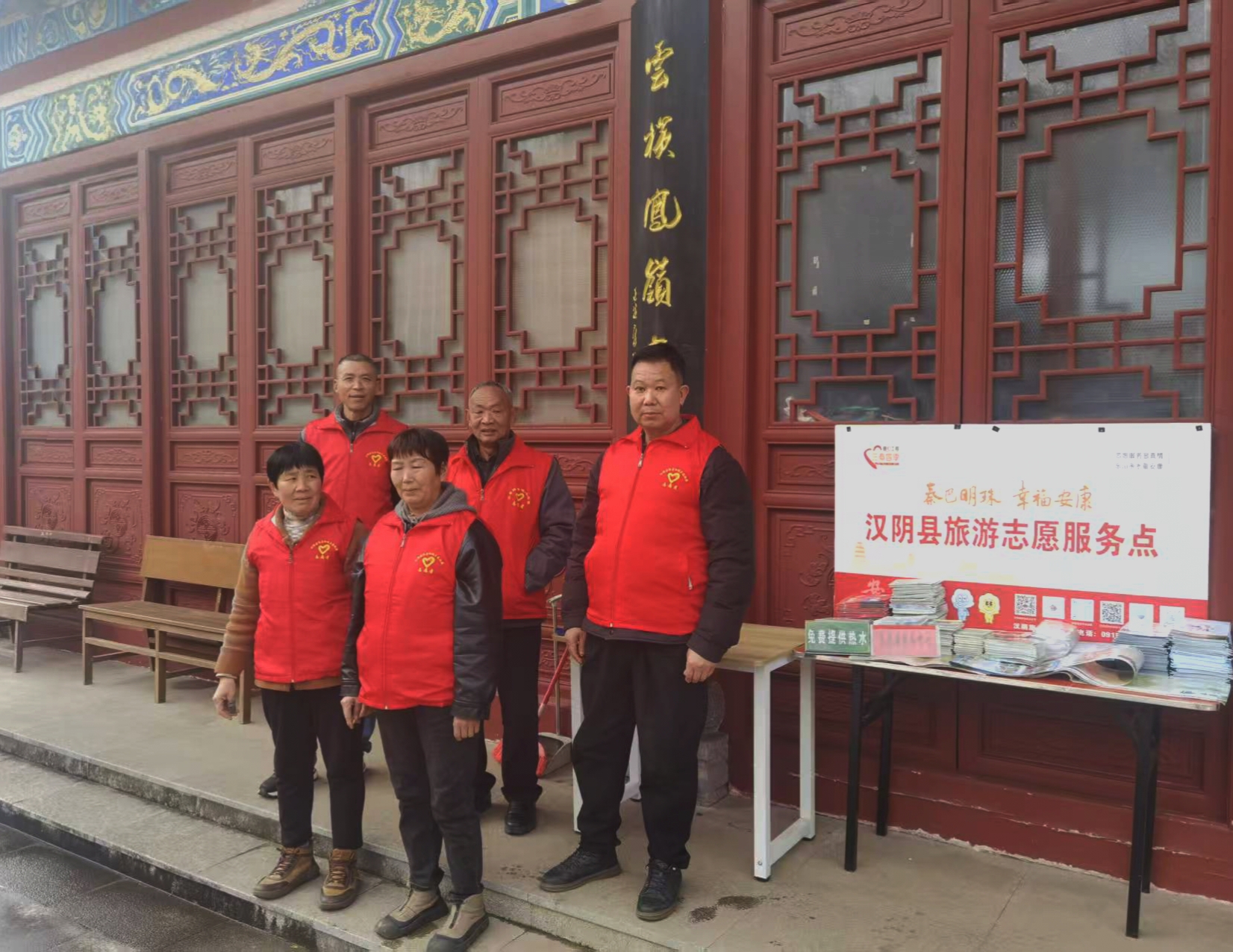 春節(jié)期間,志愿者在漢陰縣龍崗公園堅(jiān)守崗位。他們放棄與家人團(tuán)聚的時(shí)光,用行動(dòng)詮釋奉獻(xiàn)與擔(dān)當(dāng),守護(hù)游客的平安與歡樂。王磊 攝