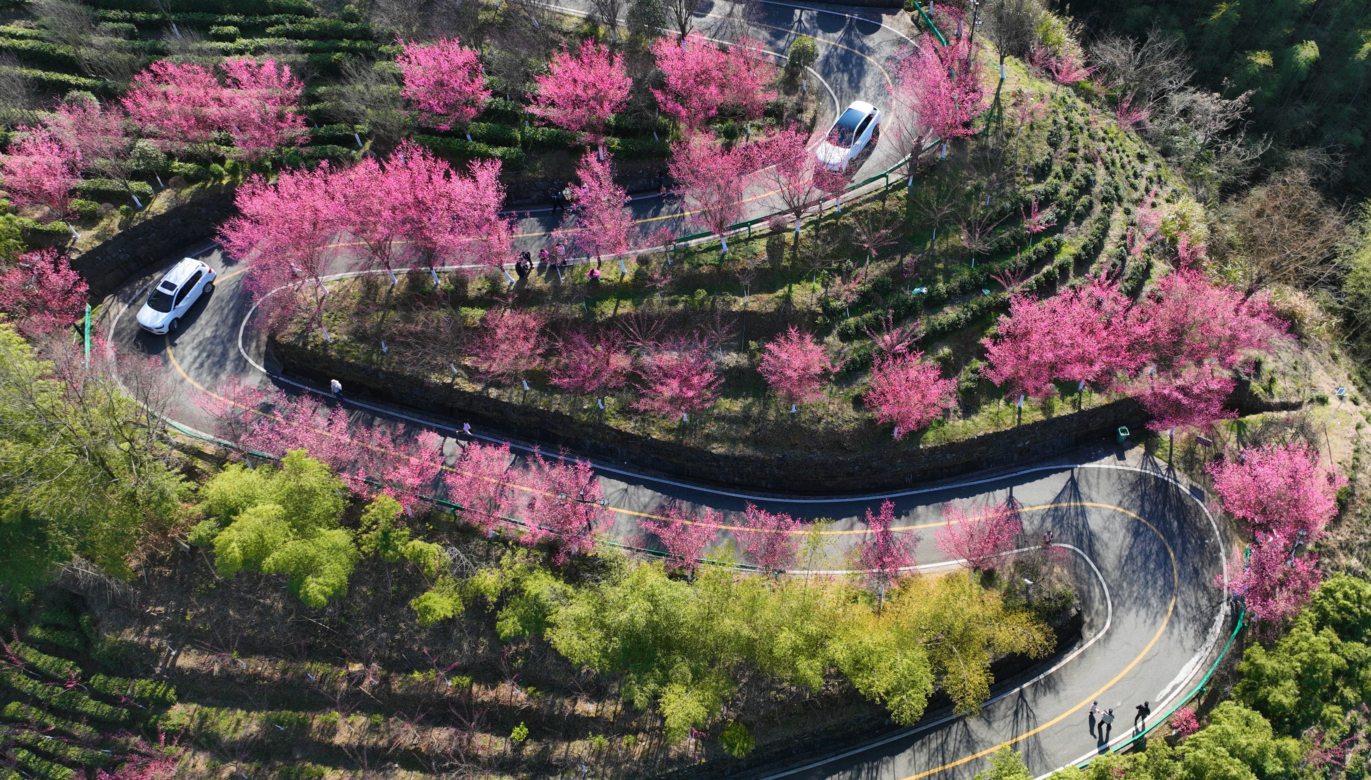 春節(jié)期間,平利縣長(zhǎng)安鎮(zhèn)洪福茶山的梅花競(jìng)相盛開,吸引眾多市民游客前來(lái)賞梅游玩。