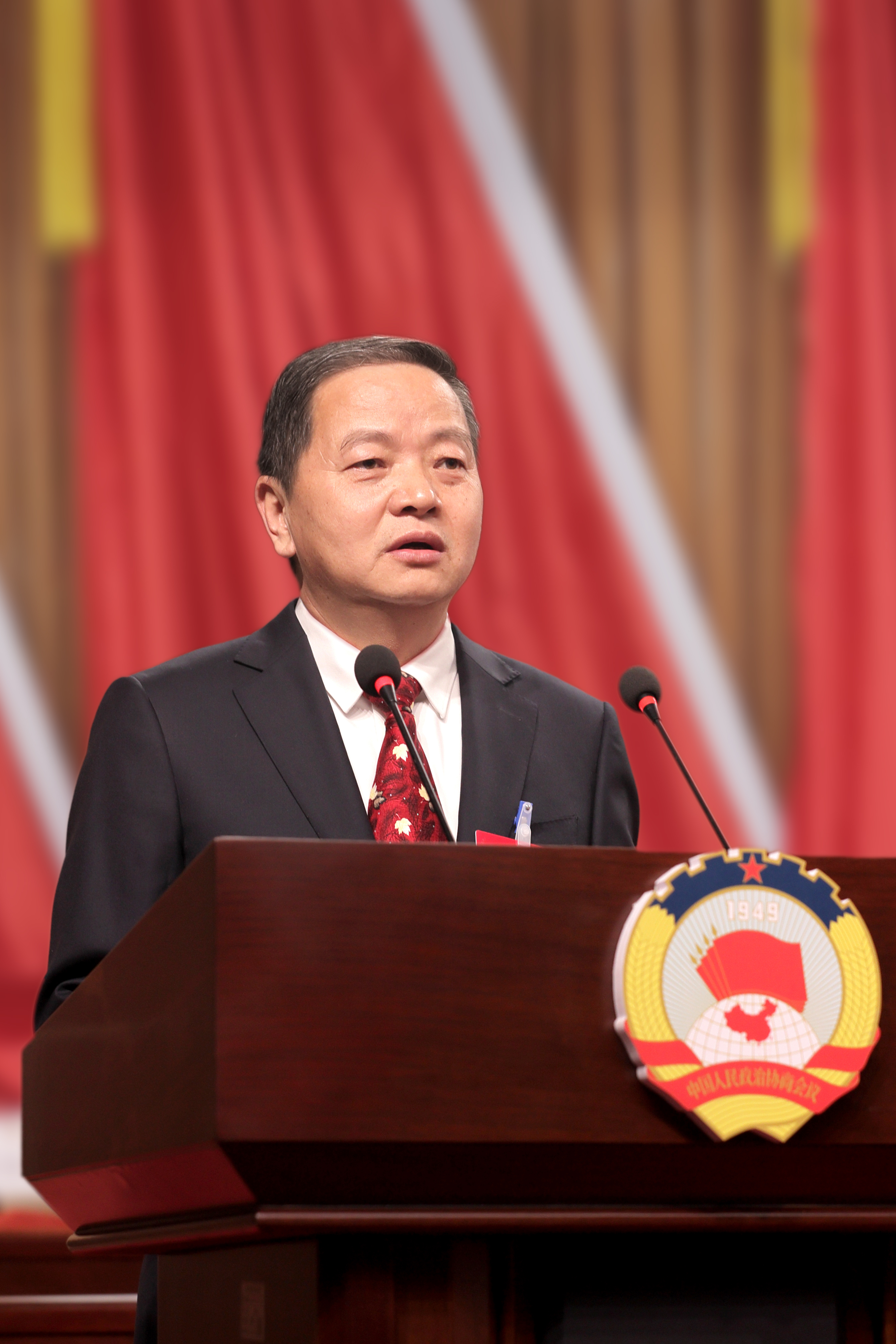 市政協(xié)主席周建功代表政協(xié)安康市第五屆委員會(huì)常務(wù)委員會(huì)作工作報(bào)告。記者 潘潤(rùn)生 攝